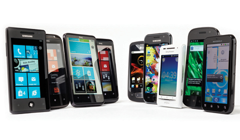 Onderstaande figuur geeft de verdeling tussen gewone mobiel en smartphone weer.