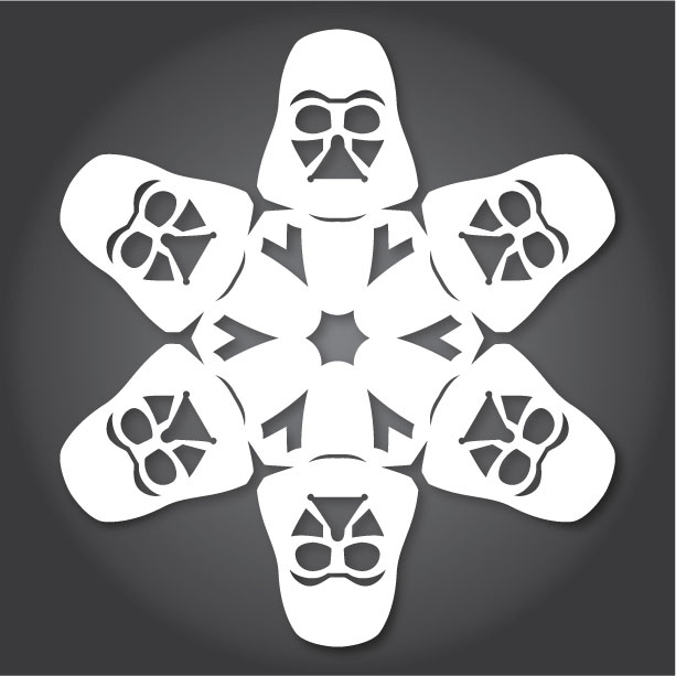 Darth VaderHet is ondertussen traditie. Als de dagen korter worden en de temperatuur daalt, maakt Anthony Herrera Star Wars Snowflakes. “Want niets schreeuwt feestdagen meer dan vers geknipte Star Wars-sneeuwvlokken”, aldus de designer. Herrera maakte in 2011 zijn eerste set patronen voor de zelfmaak-kerstversiering en besloot – wegens groot succes – jaarlijks nieuwe designs toe te voegen. Dit jaar is het thema battles. Daarvoor maakte hij dertien sneeuwvlokken waaronder Darth Vader en een rancor. Want zoals Herrera zegt: