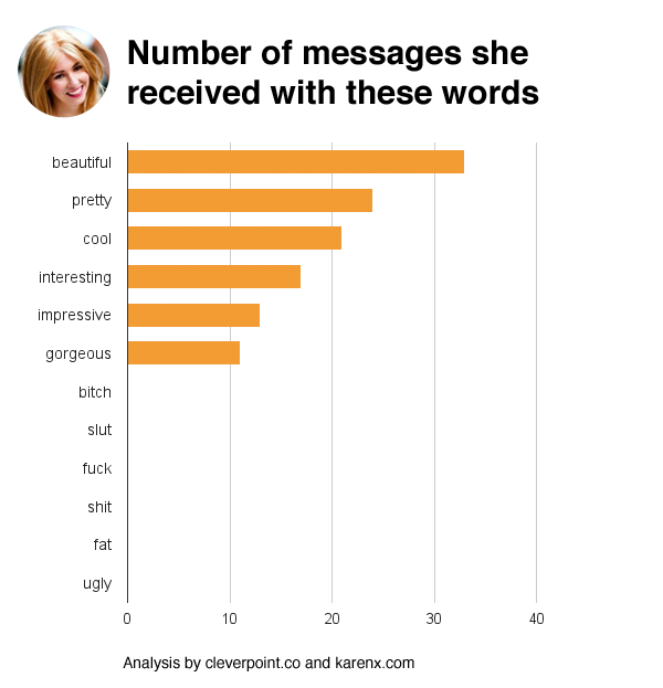 Het account gaf daarna niet thuis, om zo te testen of de mannen vijandig werden. Dat bleek niet te zo te zijn. Er zaten wat slechte pickup-lines tussen, maar nul mannen gingen schelden. Sterker nog, in veel reacties stond hoe mooi ze was. Mannen deden moeite om geïnteresseerde vragen te stellen.