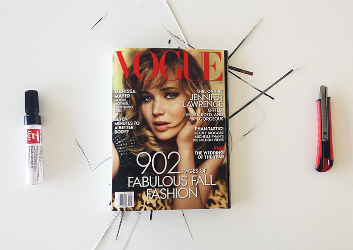 Het septembernummer van Vogue is, zoals we sinds The September Issue allemaal weten, het belangrijkste nummer van het jaar. En dankzij de honderden advertenties, ook het dikste. De editie was dit jaar maar liefst 902 bladzijden dik. Zeventig procent daarvan was reclame. Designer Joseph G. Davies besloot als experiment alle advertenties uit dit nummer te ‘blokken’. Hij scheurde pagina na pagina uit en de reclame-uitingen die hij niet kon verwijderen, maakte hij zwart met een dikke markeerstift.